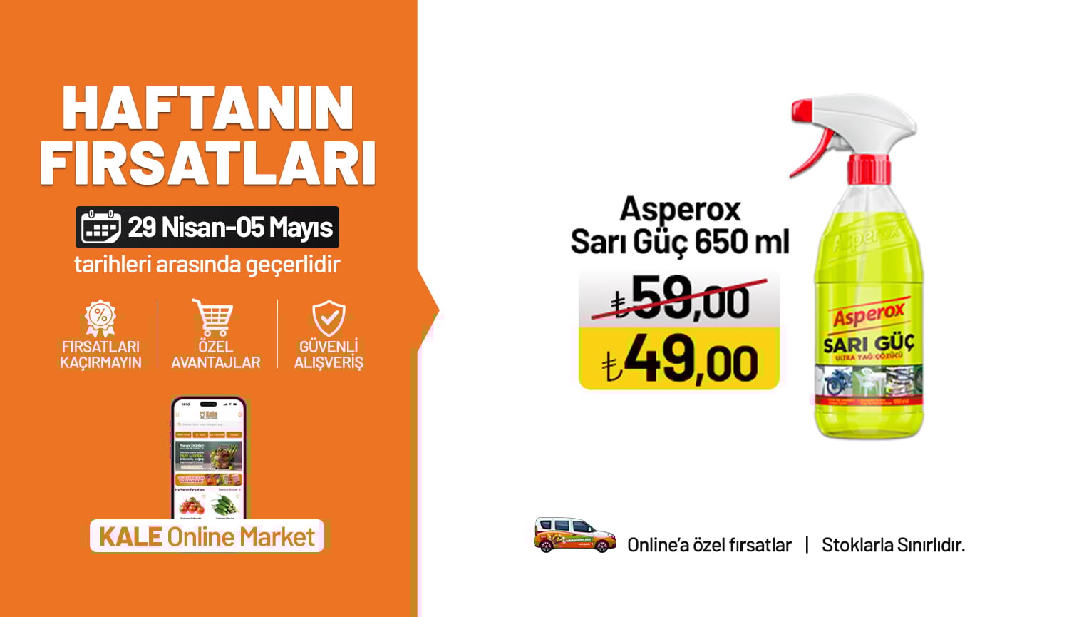 •  Online Markete Özel İndirim